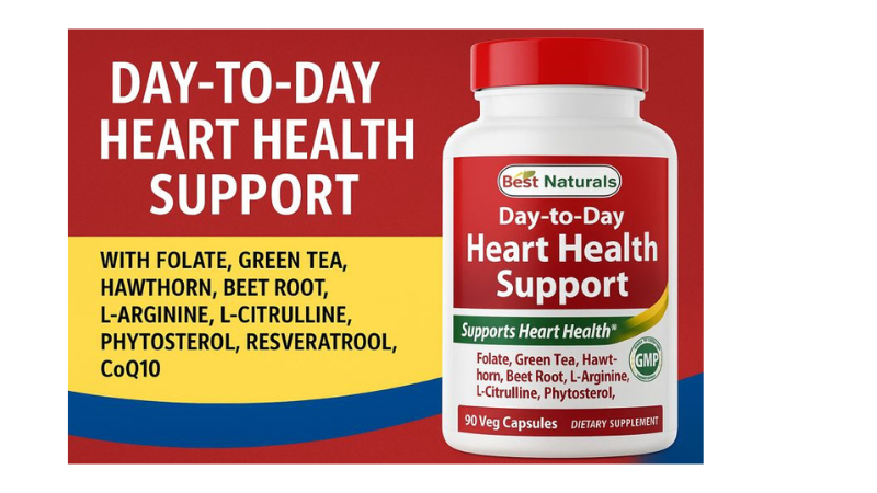 One supplement becoming very popular is Best Naturals Day-to-Day Heart Health Support, a daily vegetarian capsule that combines scientifically researched ingredients like Hawthorn, Beet Root, Green Tea, L-Arginine, L-Citrulline, Phytosterols, CoQ10, and Resveratrol.